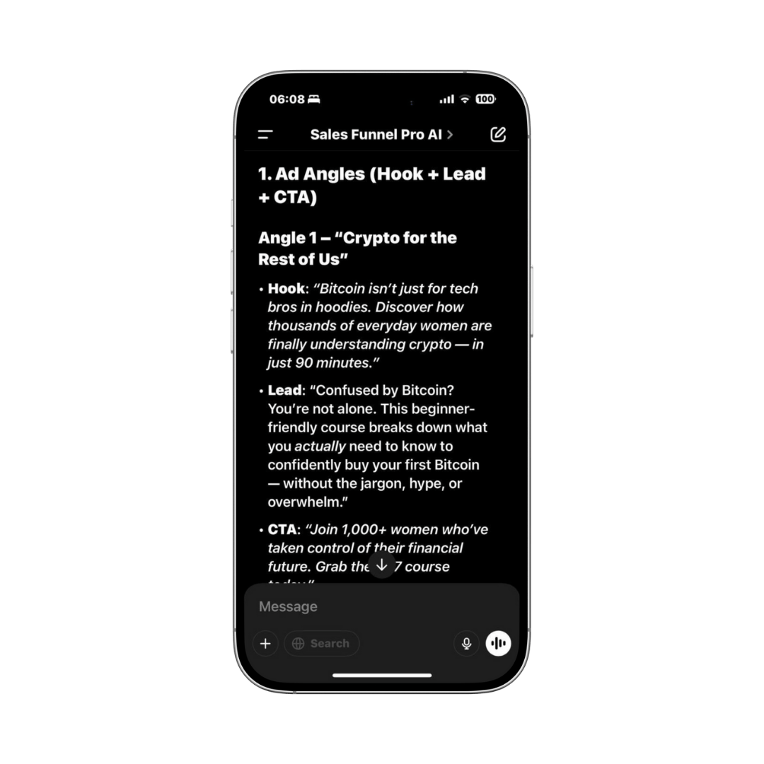 “As an agency, this is a dream. We onboard new clients, run their info through the GPT, and spit out the entire funnel strategy, copy, and ad angles — in a fraction of the time it used to take.”