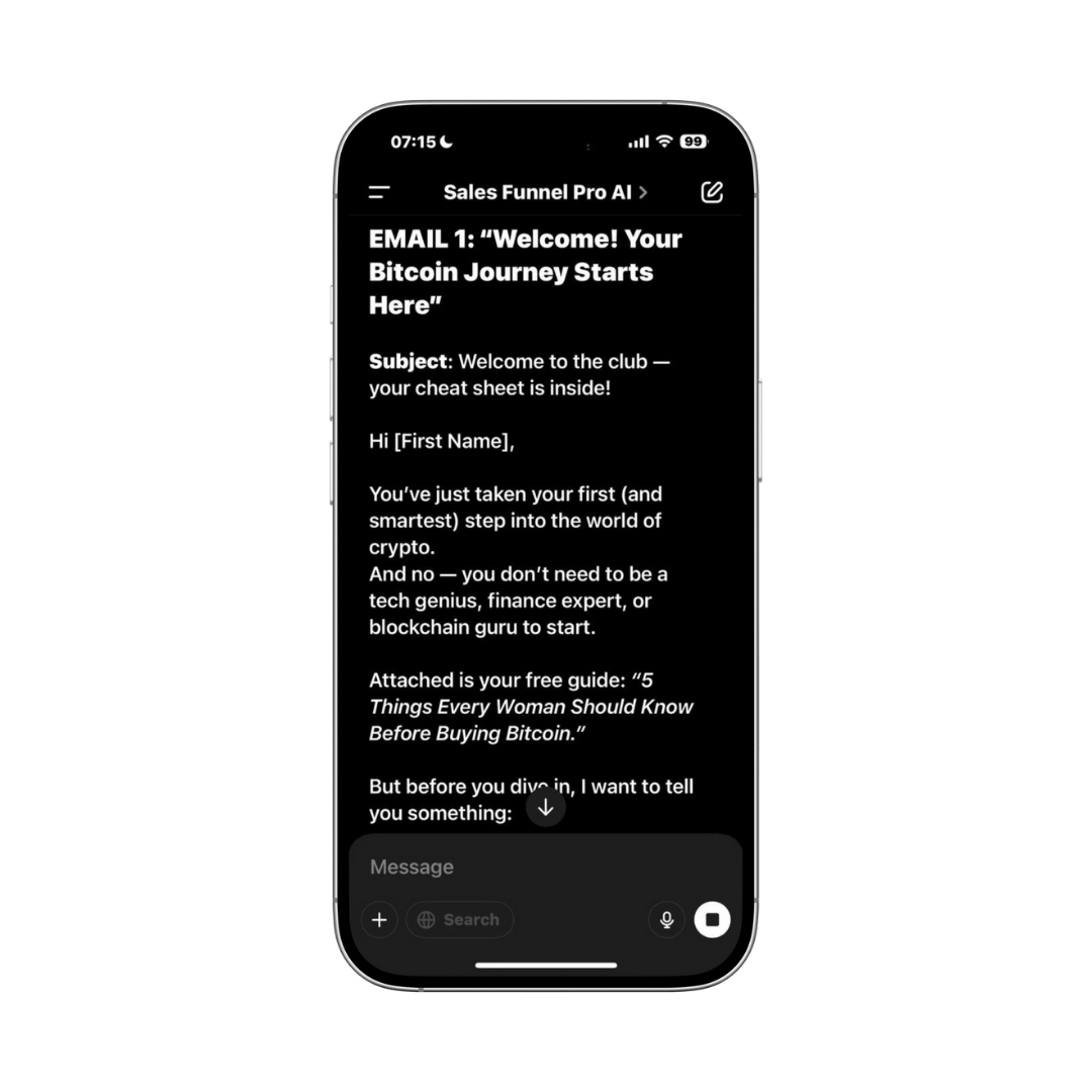 “I’ve paid £5,000+ for ‘funnel experts’ who ghosted me. This AI helped me map my value ladder, write my VSL script, and build my email sequence in one afternoon. Game. Changer.” — Rachel M., Online Coach